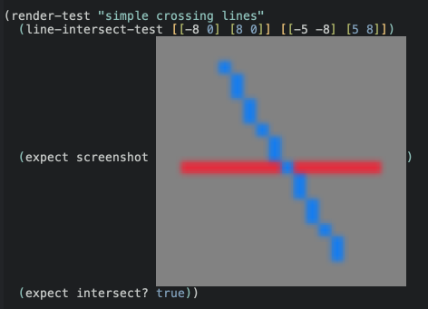 So the real reason I wrote Judge was that I wanted to write tests with pictures in them. I thought it would make for very readable tests; I thought I would be able to convince myself that all the weird vector stuff I was doing actually worked; I thought it would be a useful tool to help me understand my code better.