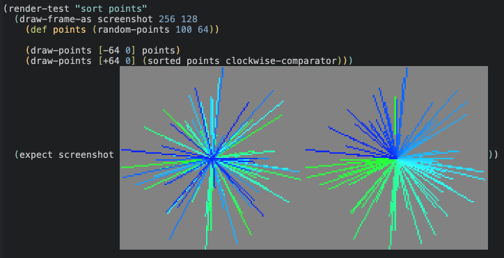 Which isn’t necessary, but it is really nice! We don’t have to sacrifice any of the ergonomics of the self-modifying test; we don’t have to degrade to writing normal, boring, out-of-band snapshot tests, just because we feel that the best way to express this test is with an image.