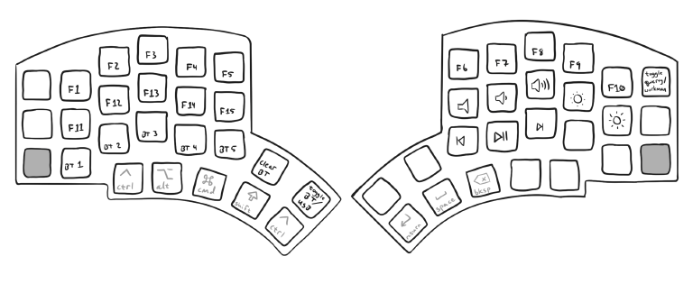 Okay, look. Keymaps are personal, and part of the fun of using a weird keyboard is coming up with your own keymap. My keymap won’t work for you. No one else’s keymap will work for you. But it’s nice to have a starting point that you can branch off from.